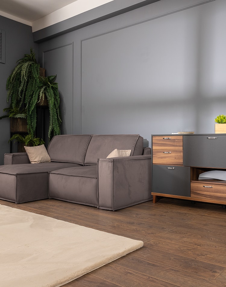 Шкаф Марвин, Тумба Марвин, Диван Кармел и ковер Rabbit