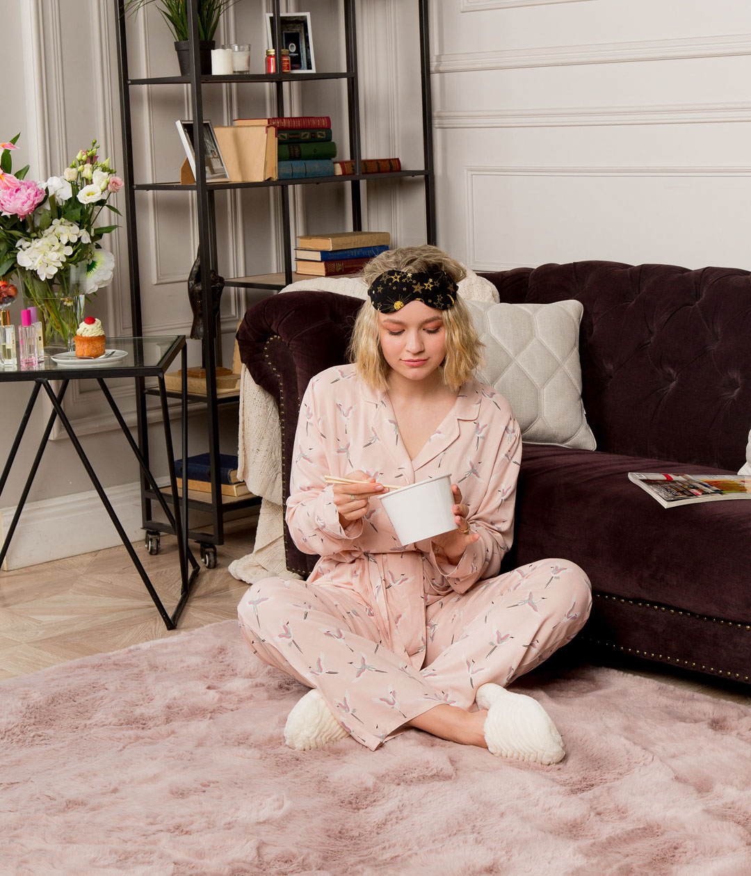 Диван Довер Какао, Стеллаж Simple и ковер Rabbit