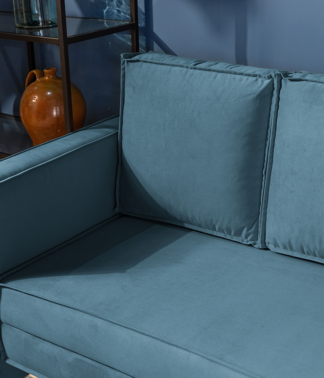 Диван Рино станет стильным акцентом вашего интерьера. Его приятная велюровая обивка не только радует глаз, но и проста в уходе. Четкие формы дивана подчеркиваются изысканным декором в виде вывернутых швов, что добавляет ему уникальности, а наличие спального места делает этот диван но только комфортным, но и функциональным предметом интерьера.