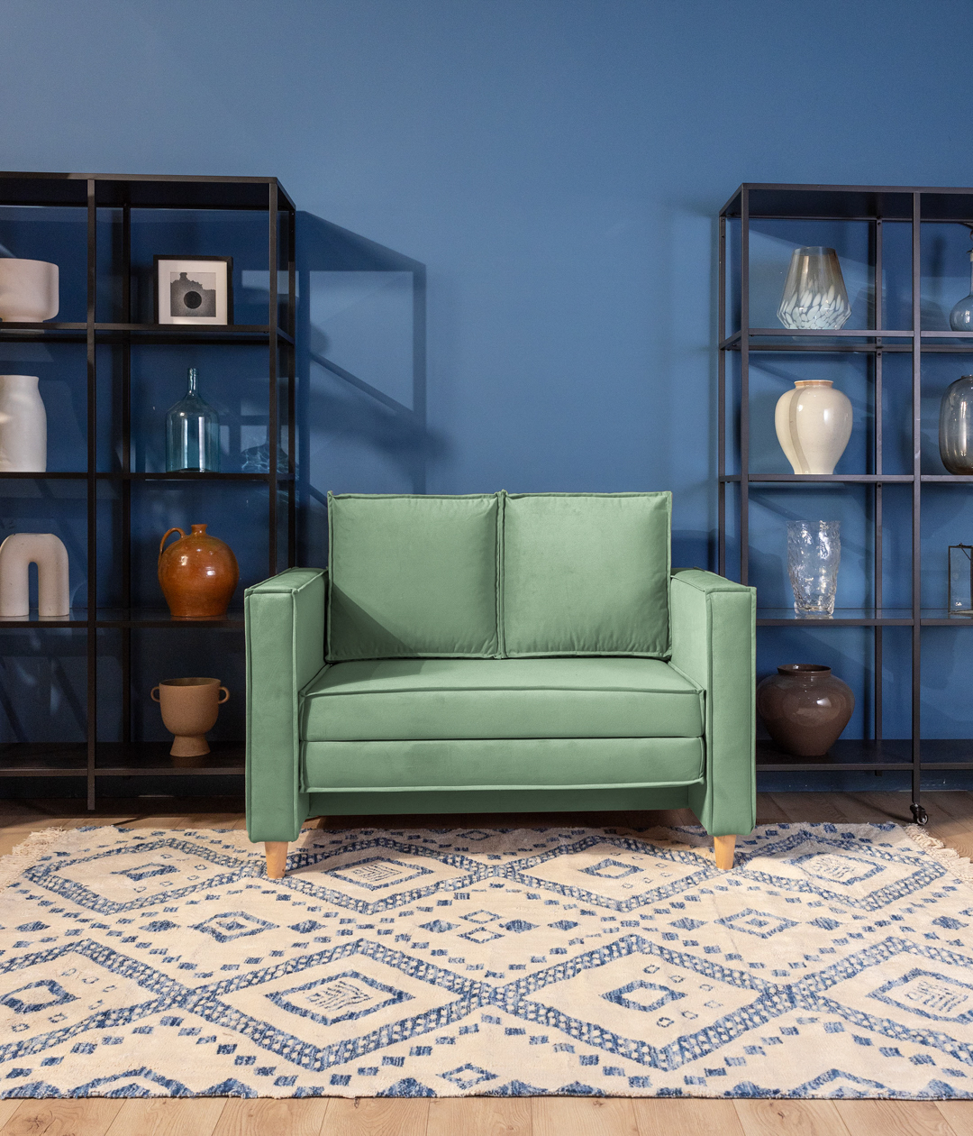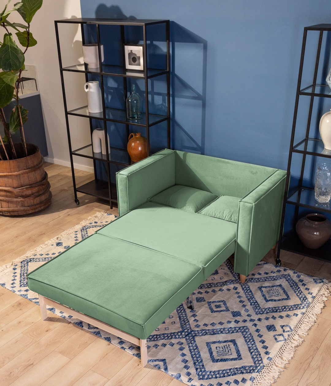 Диван Рино станет стильным акцентом вашего интерьера. Его приятная велюровая обивка не только радует глаз, но и проста в уходе. Четкие формы дивана подчеркиваются изысканным декором в виде вывернутых швов, что добавляет ему уникальности, а наличие спального места делает этот диван но только комфортным, но и функциональным предметом интерьера.