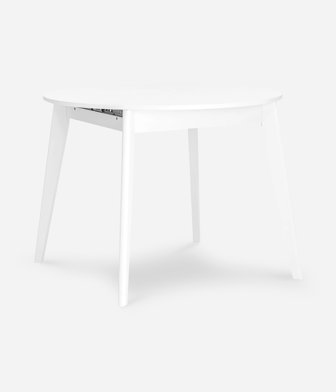 Круглый раскладной обеденный стол, диаметр 100 см. Идеально подходит для современной кухни в светлых оттенках, благодаря лаконичному дизайну к нему легко подобрать стулья. Столешница дополнительно раскладывается до 135 см.