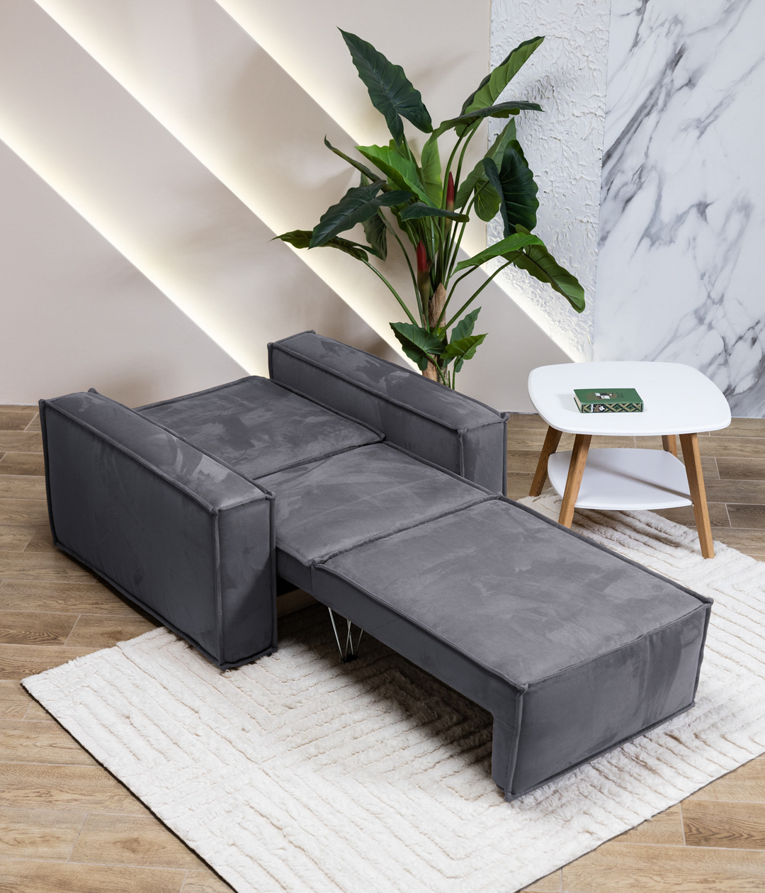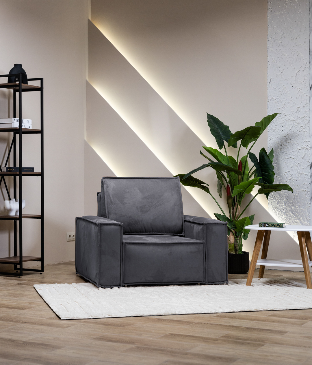 Кресло Ронсе в стиле современного минимализма идеально дополнит интерьер в духе лофт. Обивка из искусственного нубука высшей категории радует мягкой, бархатистой текстурой с благородным отливом, а блок независимых пружин обеспечивает анатомически правильную поддержку, создавая максимальный комфорт. Декоративный кант с вывернутыми швами добавляет актуальный штрих в дизайн. Кресло легко трансформируется в удобное спальное место для одного человека, сочетая стиль и функциональность.