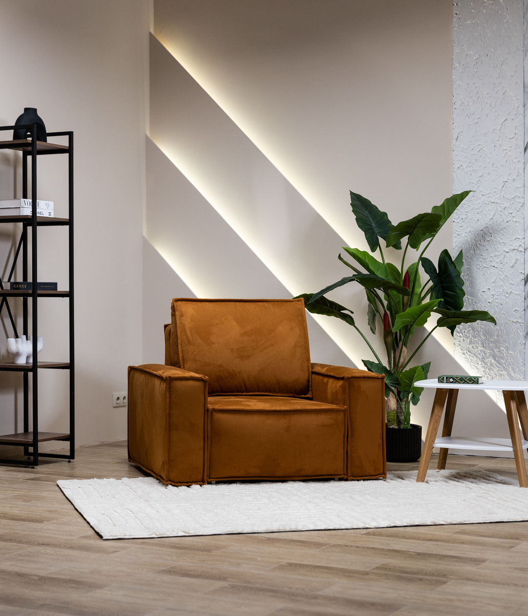 Кресло Ронсе в стиле современного минимализма идеально дополнит интерьер в духе лофт. Обивка из искусственного нубука высшей категории радует мягкой, бархатистой текстурой с благородным отливом, а блок независимых пружин обеспечивает анатомически правильную поддержку, создавая максимальный комфорт. Декоративный кант с вывернутыми швами добавляет актуальный штрих в дизайн. Кресло легко трансформируется в удобное спальное место для одного человека, сочетая стиль и функциональность.