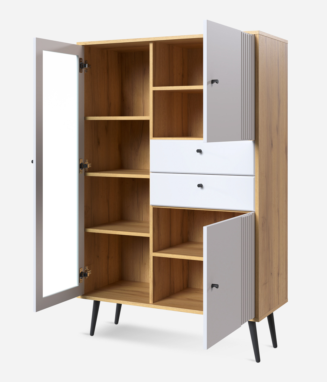Шкаф-витрина Саксония выполнен в современном стиле, который гармонично впишется в интерьер гостиной, детской комнаты или спальни. Функциональный и надежный элемент интерьера, который станет украшением вашей комнаты и обеспечит удобное хранение вещей.