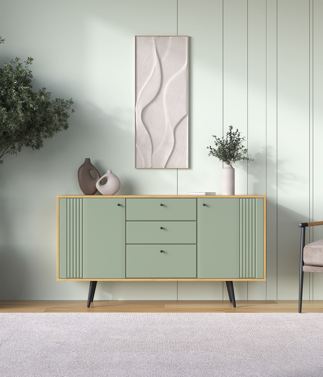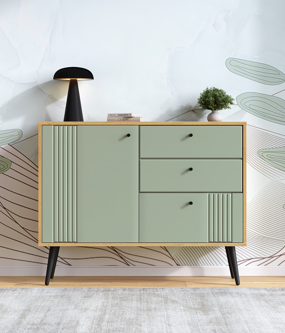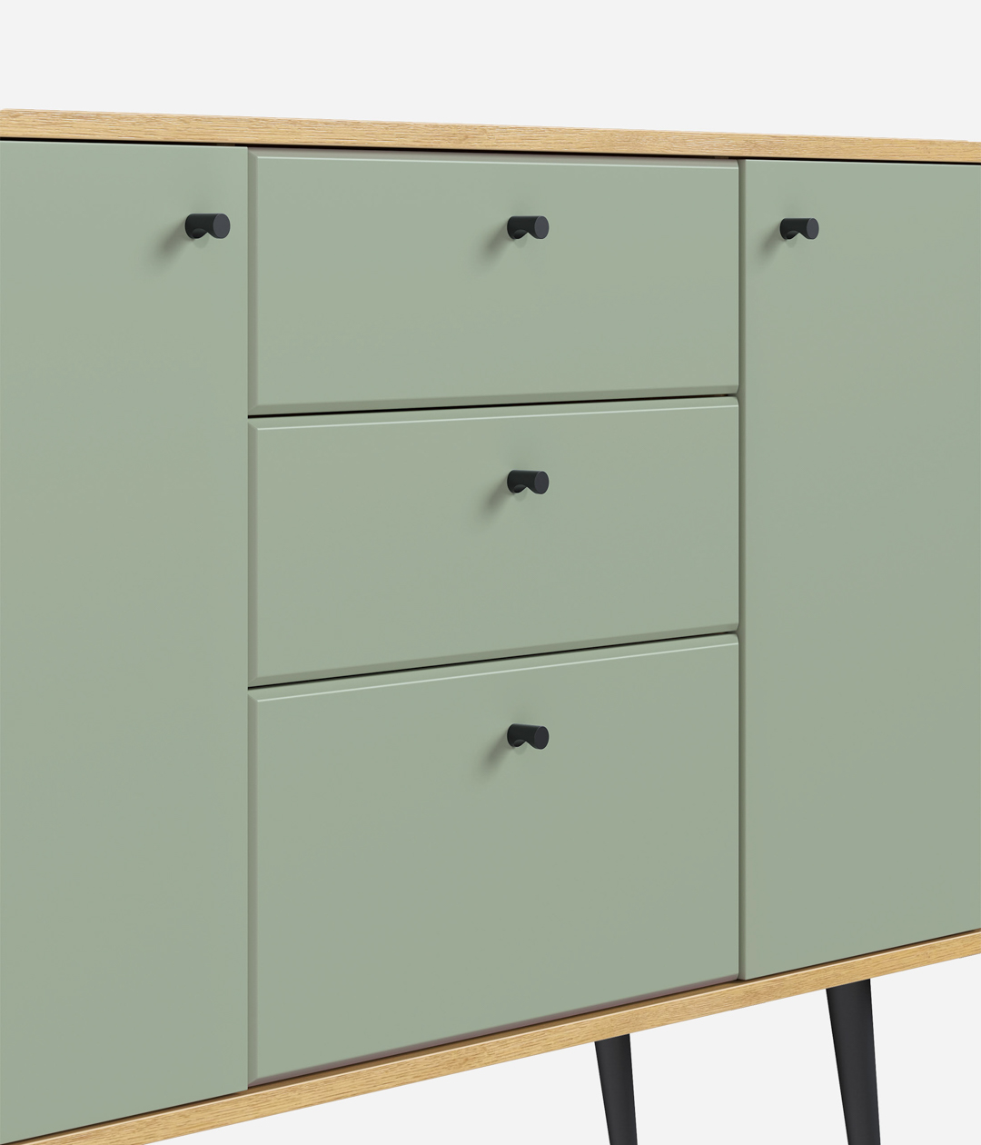 Комод на высоких ножках Саксония многофункционален и практичен, подойдет для использования в качестве тумбы под телевизор в гостиной или спальне, а также для хранения вещей.