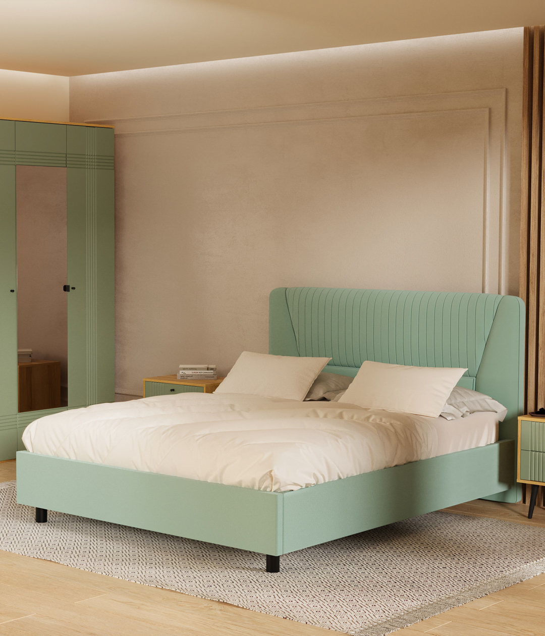 Мягкая кровать «Саксония» в обивке из микровелюра дополнит интерьер спальни в современном стиле. Дизайн модели отличается высоким фигурным изголовьем с вертикальными строчками. Ортопедическое основание с удобным механизмом подъёма и вместительный бельевой короб порадуют своего обладателя.