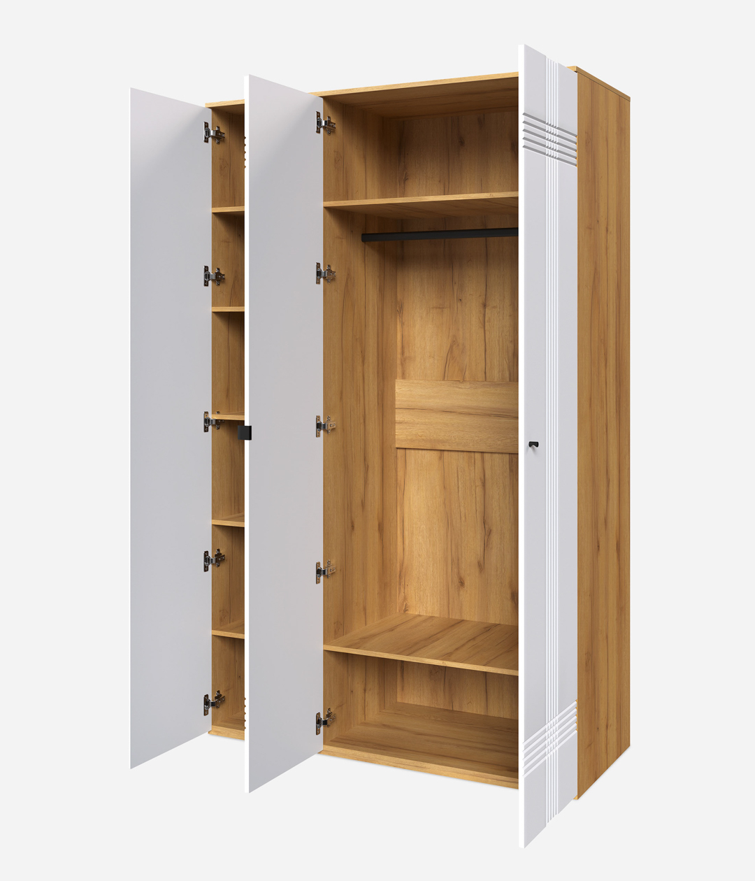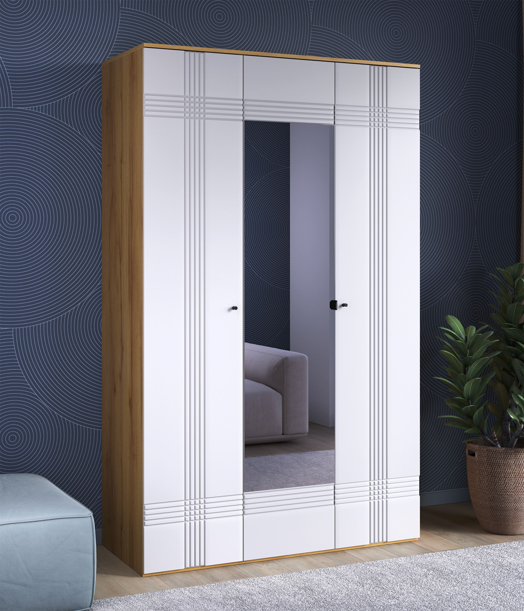 Шкаф 3-створчатый Саксония выполнен в современном стиле, сочетая в себе функциональность и эстетику. Установка шкафа напольная, что обеспечивает устойчивость и надежность конструкции. Полезная глубина шкафа составляет 57 см, что делает его вместительным и функциональным.