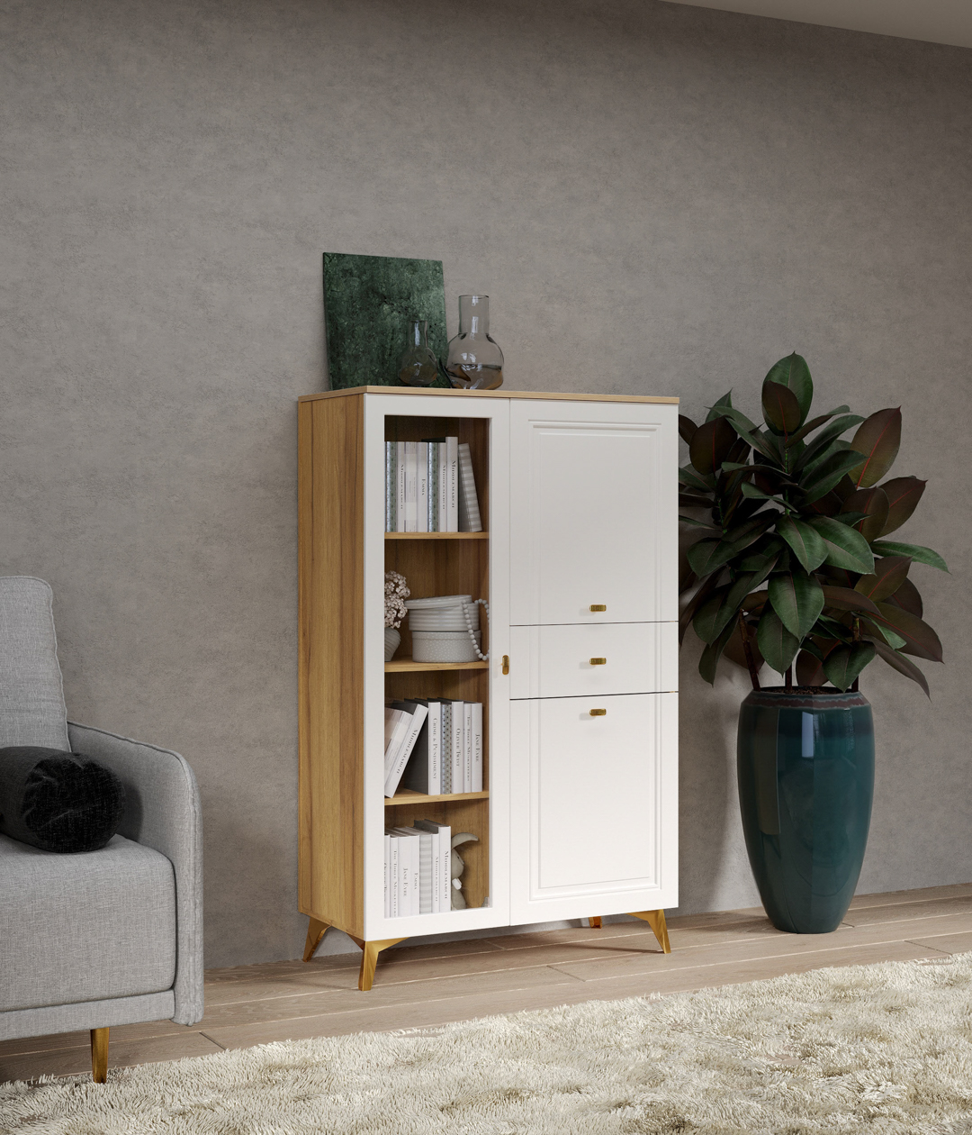 Шкаф-витрина Кураж Вега Сапфир выполнен в современном стиле, который гармонично впишется в интерьер гостиной, детской комнаты или спальни. Функциональный и надежный элемент интерьера, который станет украшением вашей комнаты и обеспечит удобное хранение вещей.