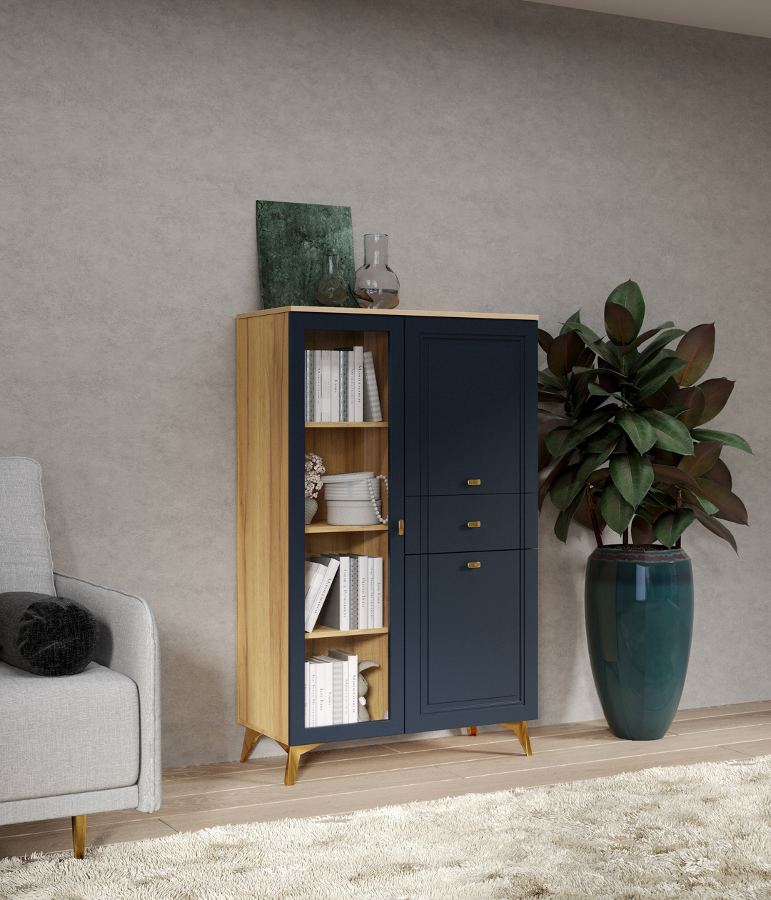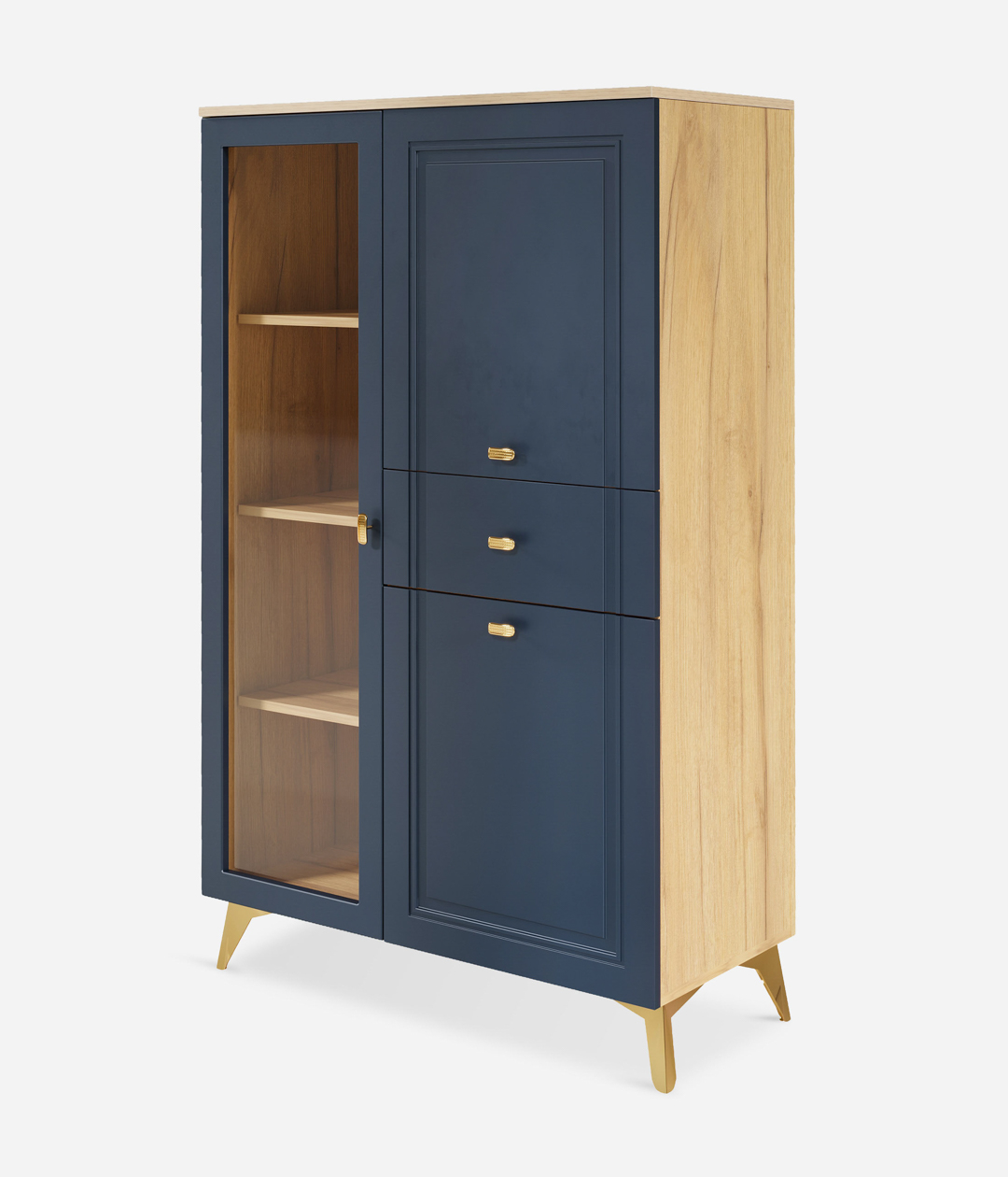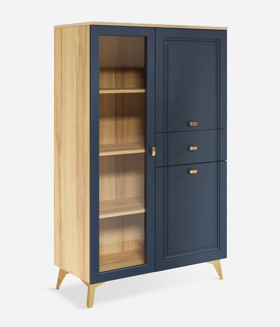 Шкаф-витрина Кураж Вега Сапфир выполнен в современном стиле, который гармонично впишется в интерьер гостиной, детской комнаты или спальни. Функциональный и надежный элемент интерьера, который станет украшением вашей комнаты и обеспечит удобное хранение вещей.
