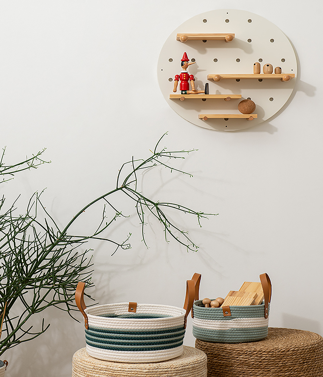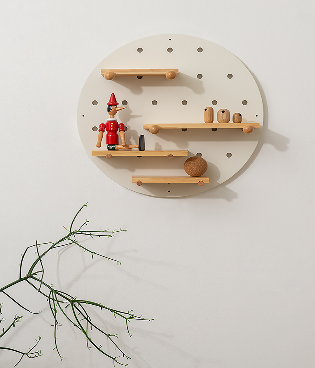 Полка круглая Shely – многофункциональный предмет интерьера, который позволит удобно разместить различные аксессуары: наушники, декор, книги, игрушки, рамки с фотографиями, часы, цветочные горшки, сумки и многое другое. Конструкция предусматривает наличие горизонтальных полок и специальных держателей.