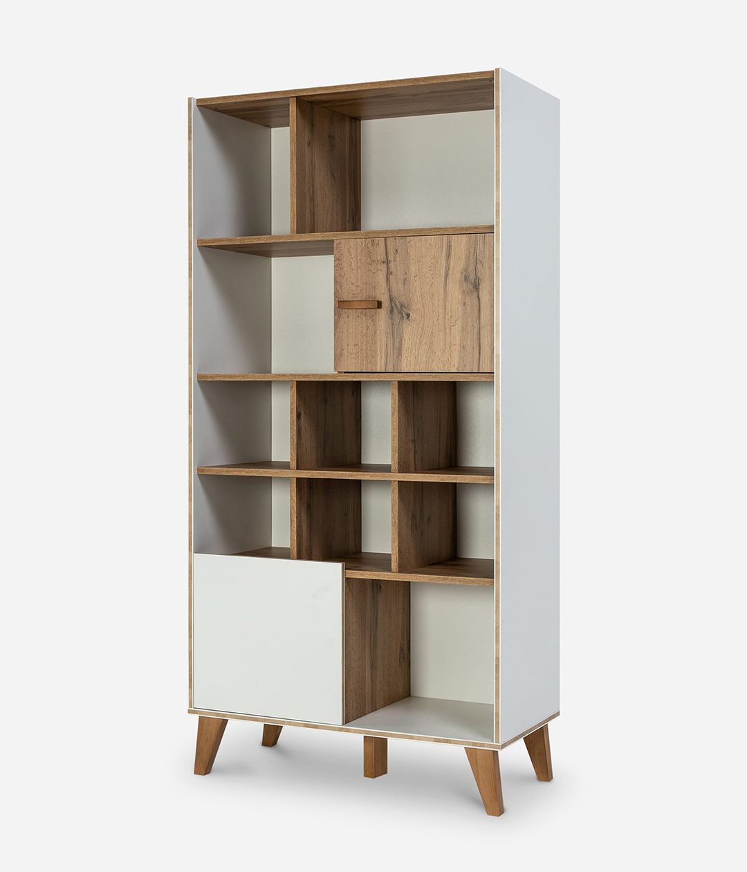 Изюминку модели обеспечивает асимметричное расположение полок, имеющих отличные друг от друга размеры.