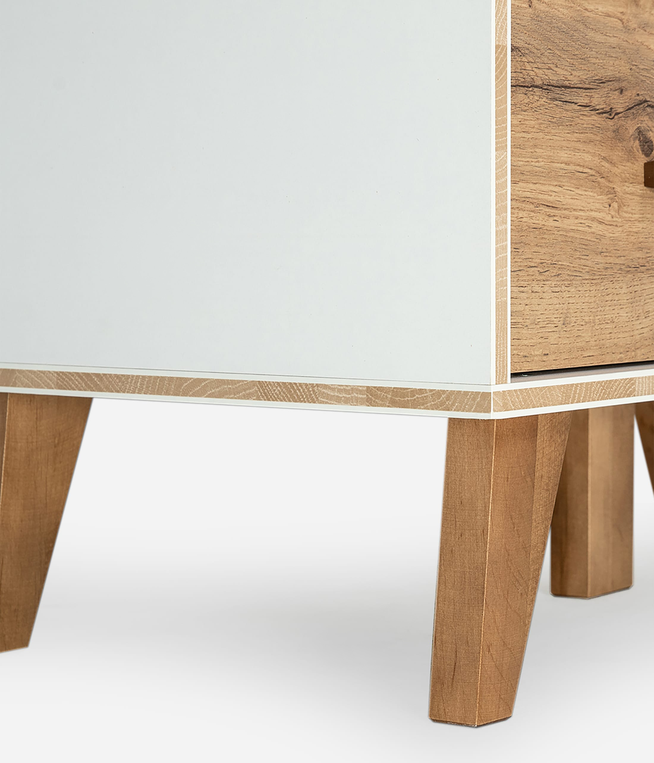 Правильные формы, приятное сочетание древесного оттенка корпуса с белыми фасадами - все это освежит интерьер и привнесет уюта.