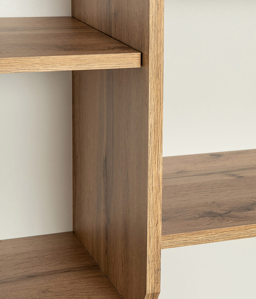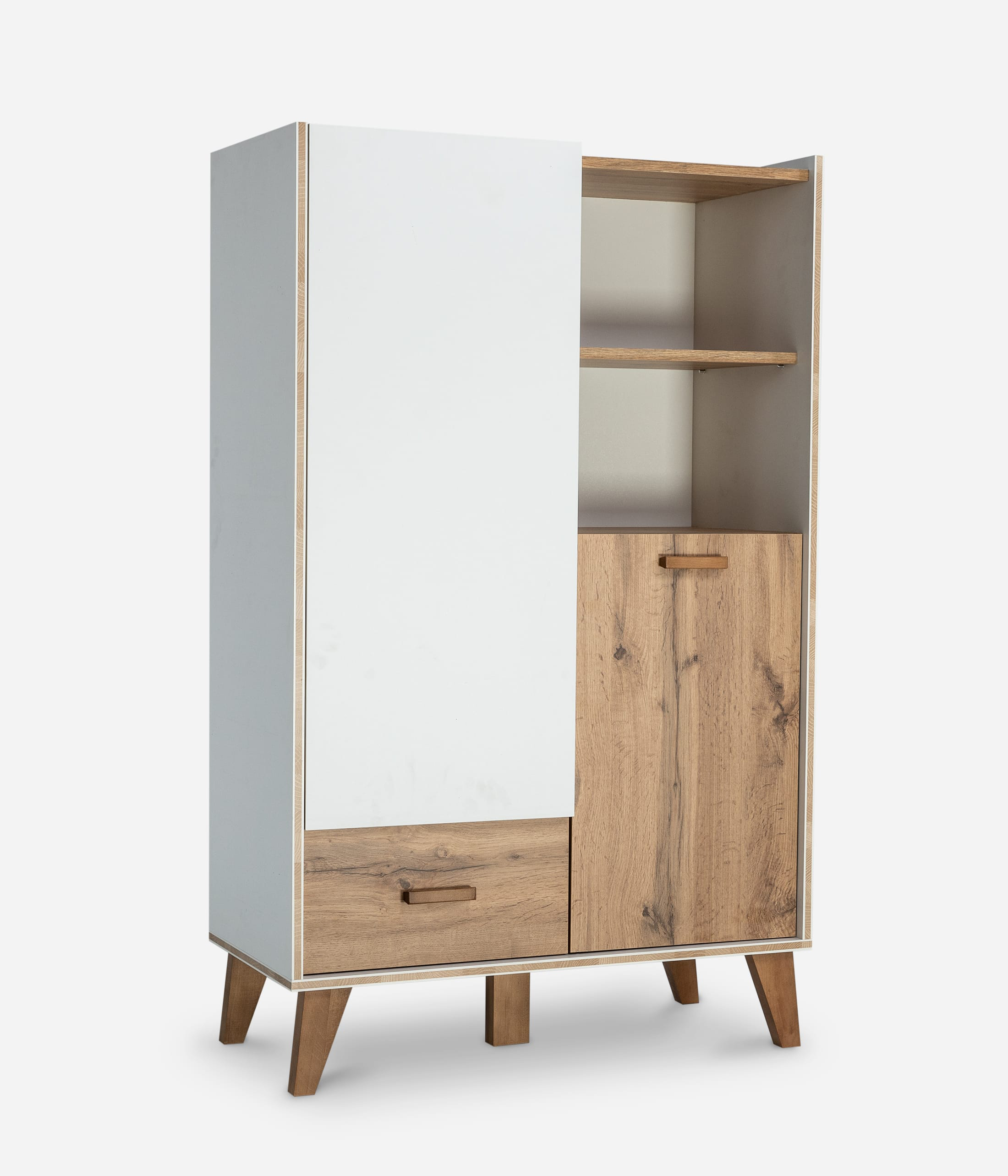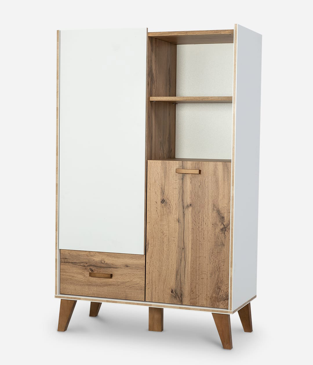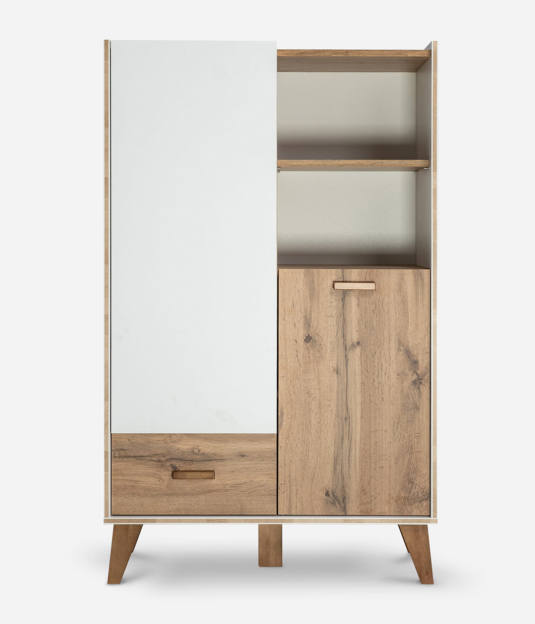 На открытых полках можно удобно расставить книги, аксессуары и предметы декора, а за глухой дверцей - спрятать личные вещи.