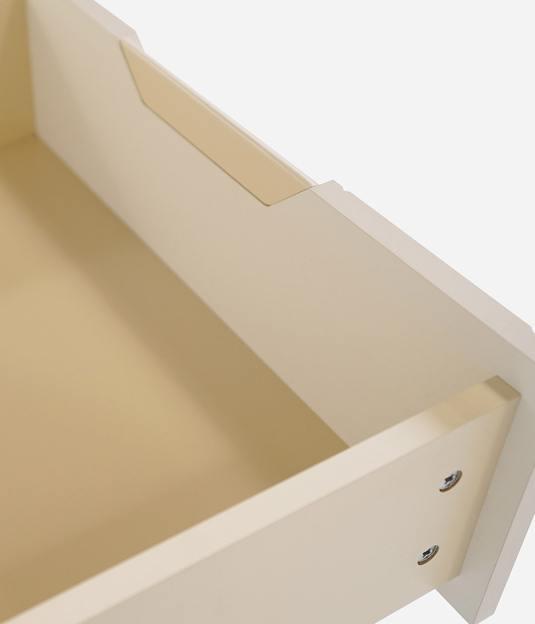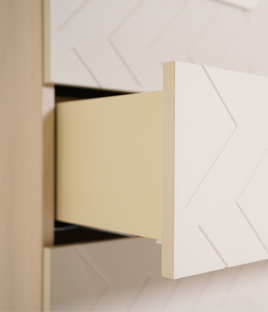 Модель оснащена пятью выдвижными ящиками с плавным ходом, что позволяет держать под рукой необходимые вещи.