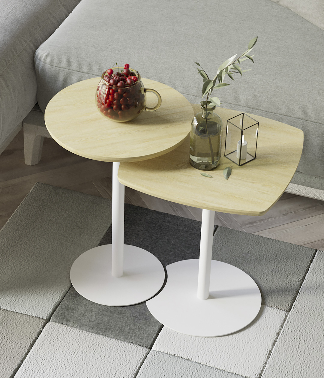 Комплект столов журнальных «Старк» представляет собой гармоничную и функциональную композицию из двух столиков разной высоты и формы, расположенных один над другим. Дизайнерский прием - способность разместить данную модель любым комфортным способом или использовать каждый из них по отдельности.
