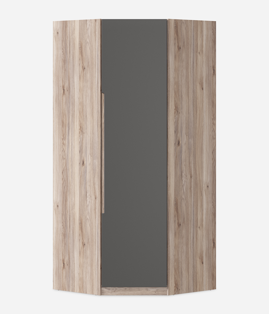 Угловой шкаф Стефания – стильная и компактная модель, которая позволит сэкономить пространство в комнате и при этом добавить обстановке оригинальности. Благодаря необычной геометрии шкаф выглядит небольшим, но у него значительный объём.