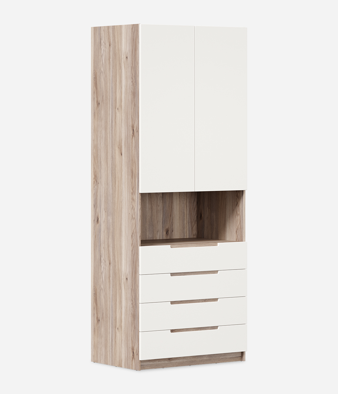 Двухстворчатый шкаф Стефания можно установить отдельно или включить в состав шкафной группы в спальне. Модель имеет многоцелевое назначение – в ней найдут свое место постельные принадлежности, нижнее белье, книги, предметы декора.