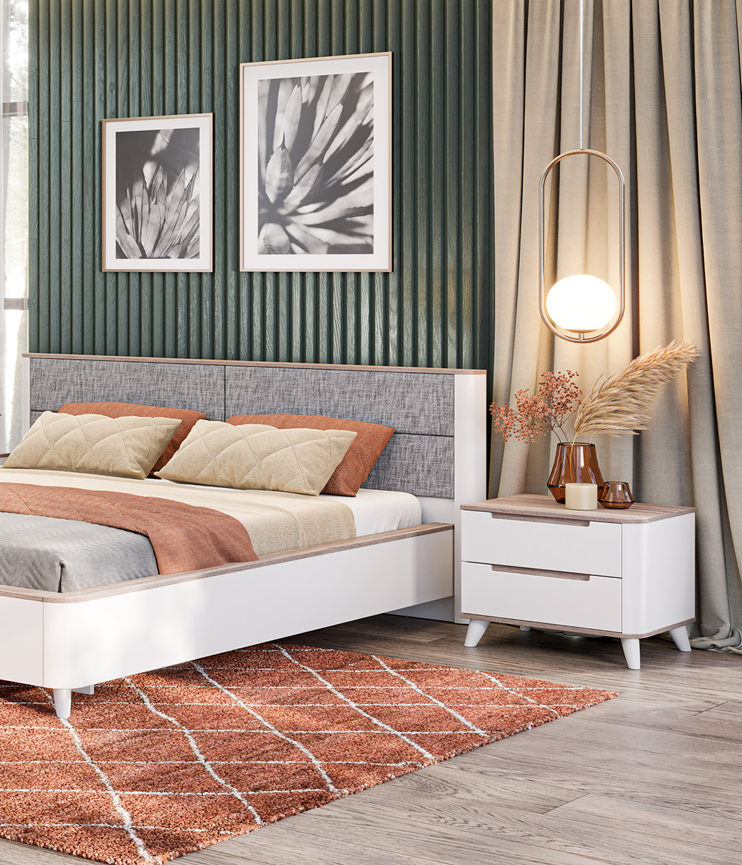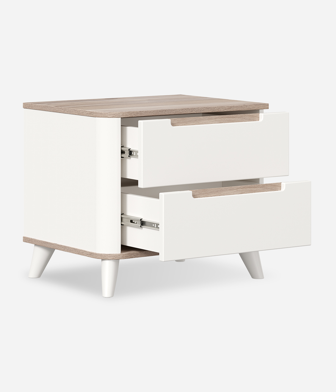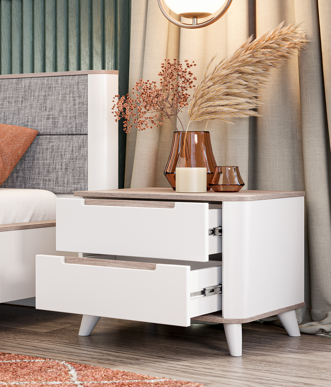 Тумба из коллекции Стефания привлекает внимание эффектным дизайном. Отлично смотрится сочетание матовых однотонных элементов и деталей под золотистую древесину, а расставленные в стороны устойчивые ножки придают облику модели некоторую кокетливость.