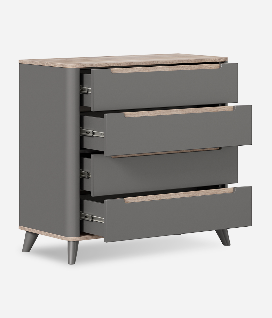 Тумба из коллекции Стефания привлекает внимание эффектным дизайном. Отлично смотрится сочетание матовых однотонных элементов и деталей под золотистую древесину, а расставленные в стороны устойчивые ножки придают облику модели некоторую кокетливость.