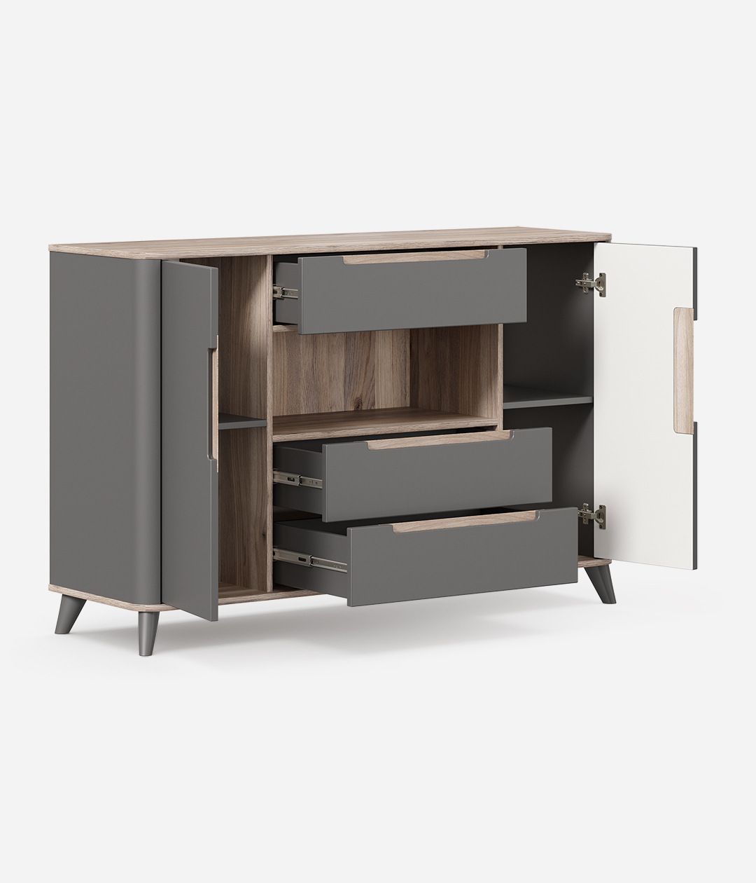 Тумба Стефания внесет в интерьер спальни спокойную расслабляющую атмосферу: все ее углы и вертикальные торцы скруглены в целях безопасности. Модуль поможет решить задачу организации хранения вещей: постельного и нижнего белья, одежды для сна, косметических средств.