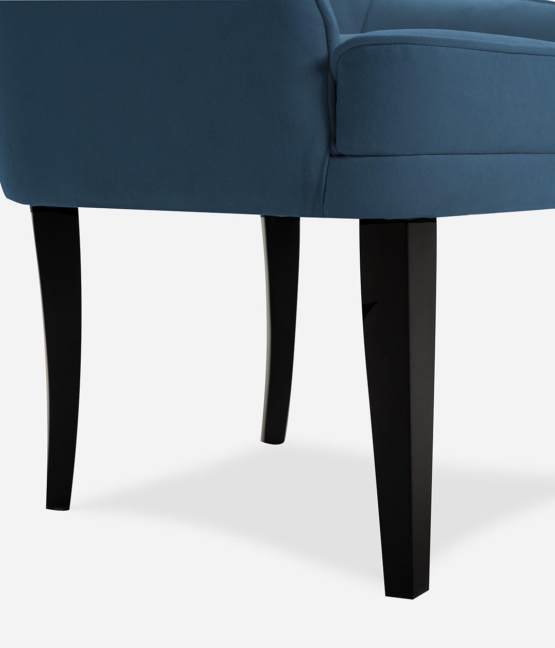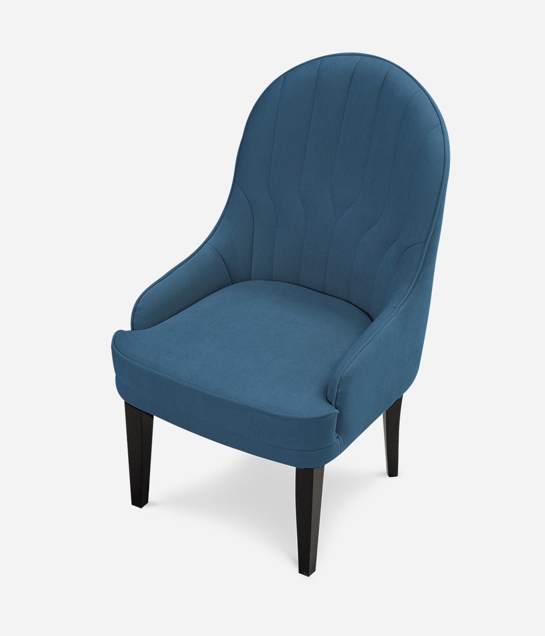 Высокие ножки кресла делают его форму легкой, максимально открывая пространство. К тому же, такая конструкция упрощает уборку, делая доступным напольное покрытие.