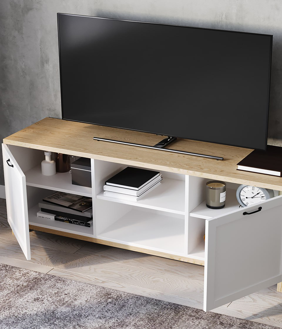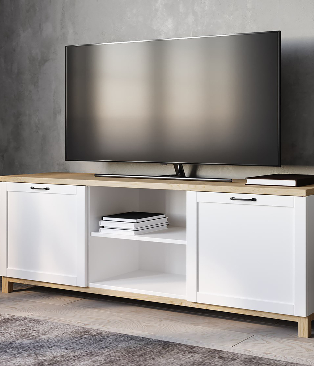 Тумба под телевизор напольная Техас это стильное и функциональное решение для вашего интерьера. Тв тумба позволит удобно организовать пространство для хранения любых мелочей, а на открытые полки легко можно разместить декор по вашему уникальному вкусу.