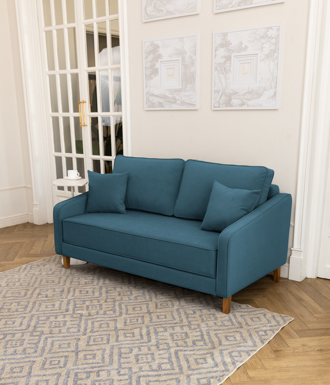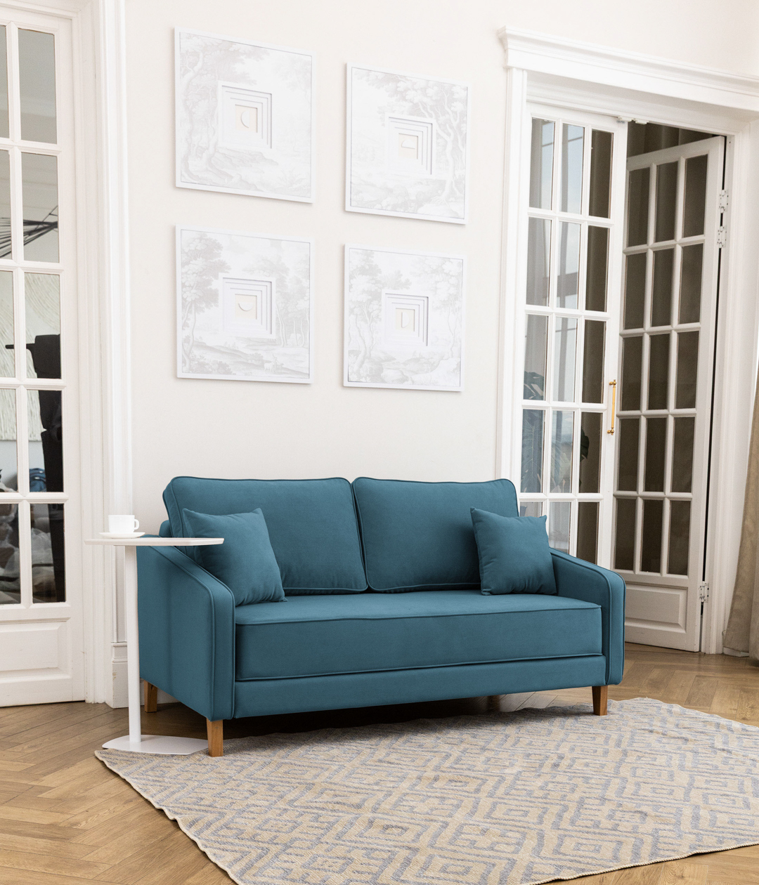 Диван Теллер сочетает в себе баланс между эстетикой и практичностью. Его минималистичный дизайн делают его идеальным выбором для современных помещений. Высокие деревянные ножки визуально увеличивают пространство и добавляют легкости, а множество доступных расцветок обивки позволяет легко вписать такой диван в любой интерьер.