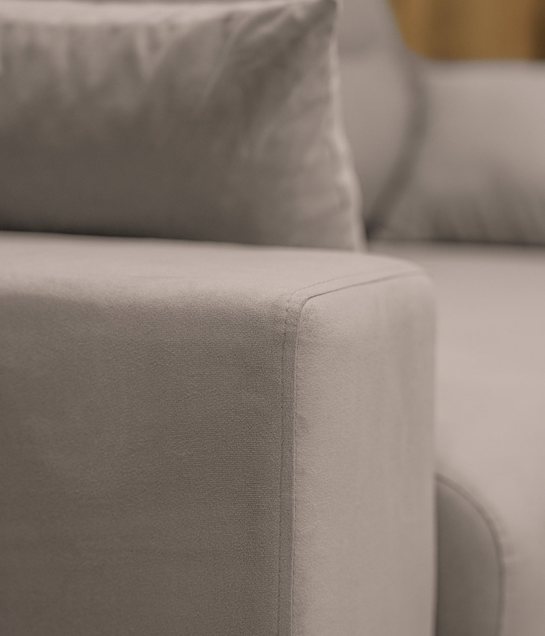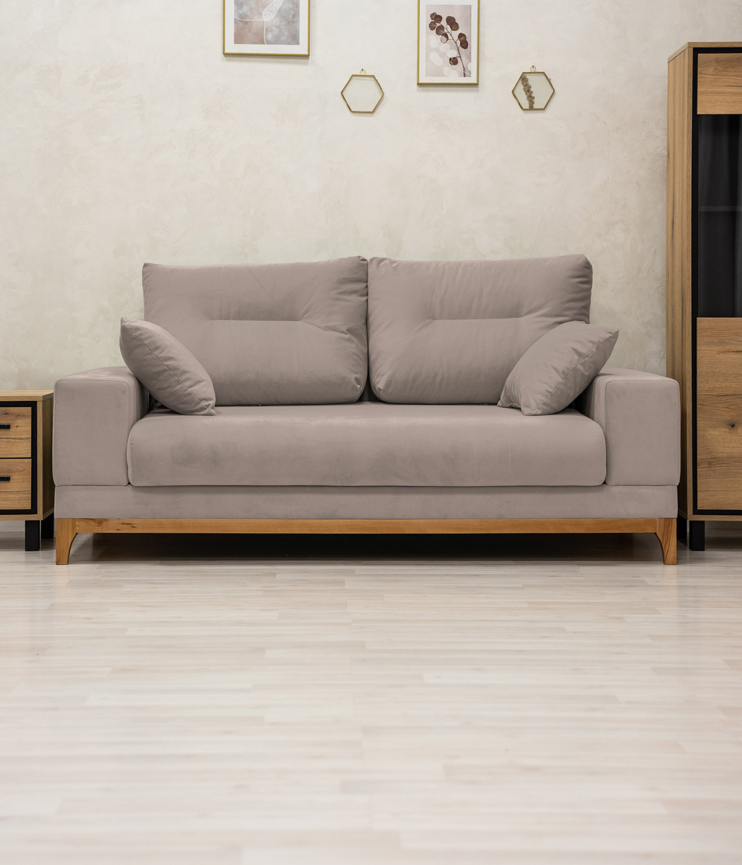 Высокие ножки дивана делают его форму легкой, максимально открывая пространство. А натуральное дерево подчеркивает естественность материалов. Кроме того, такая конструкция упрощает уборку, делая доступным напольное покрытие.