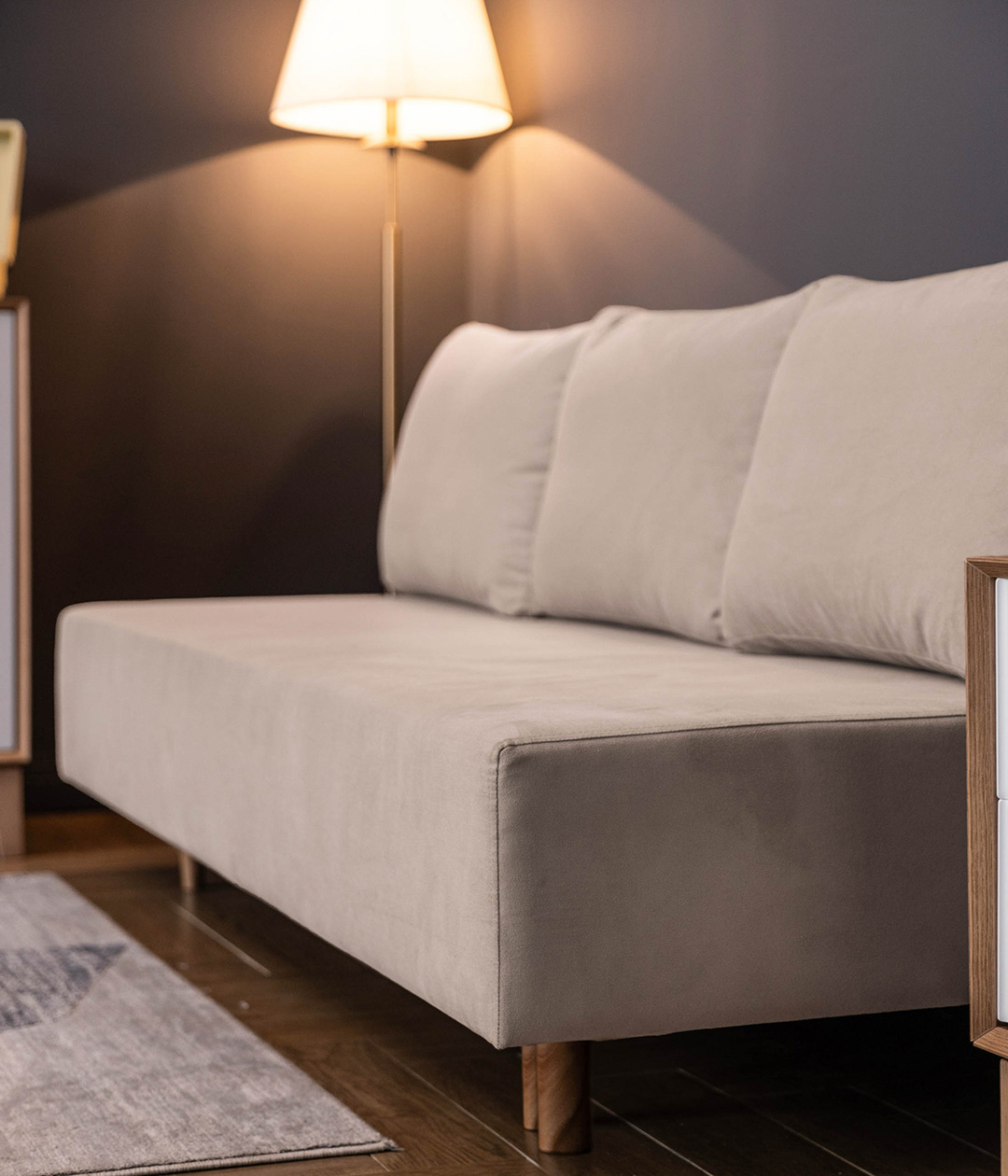 Микровелюр «Велютто» имеет особенно нежную и бархатистую структуру. Ткань устойчива к когтям домашних питомцев и защищает диван от появления затяжек, петель и дыр.