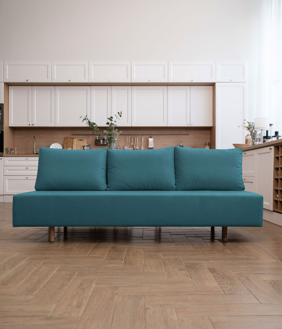 Диван Трентон в скандинавском стиле без подлокотников идеально подходит для тех, кто ценит минимализм и функциональность. Ровное спальное место обеспечивает комфортный отдых, а высокие ножки придают легкость и современный вид. Этот диван станет отличным решением для компактных помещений, сочетая удобство и стиль.