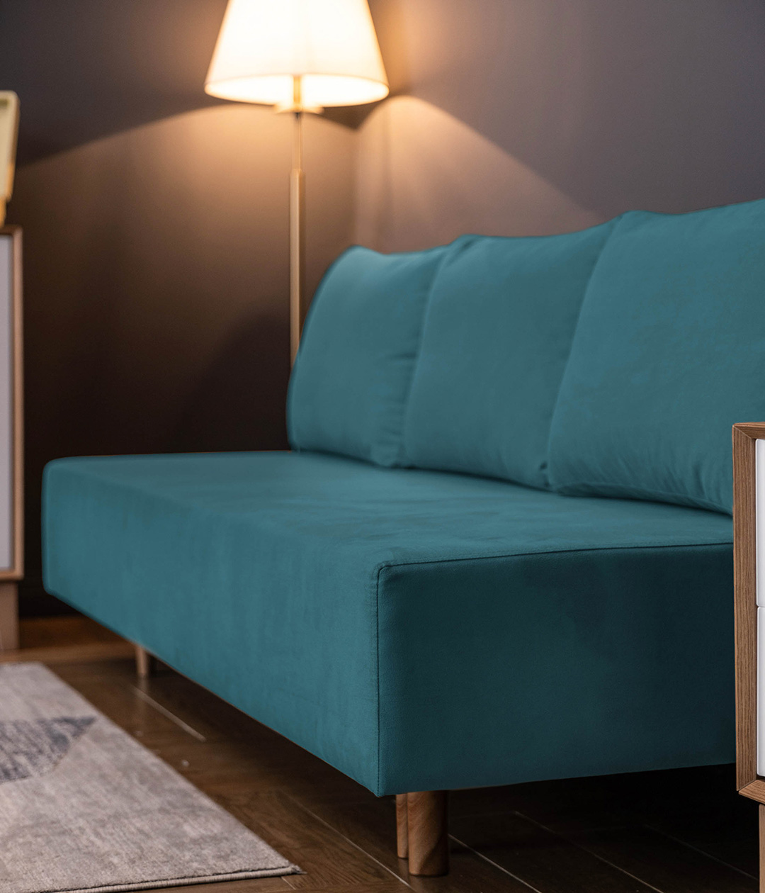 Микровелюр «Велютто» имеет особенно нежную и бархатистую структуру. Ткань устойчива к когтям домашних питомцев и защищает диван от появления затяжек, петель и дыр.
