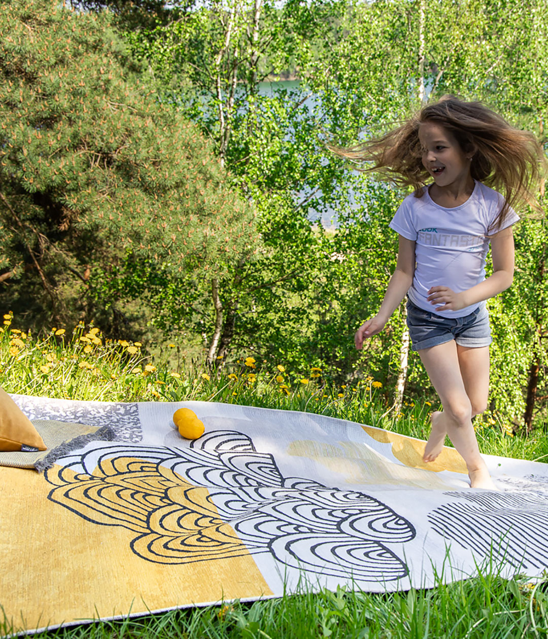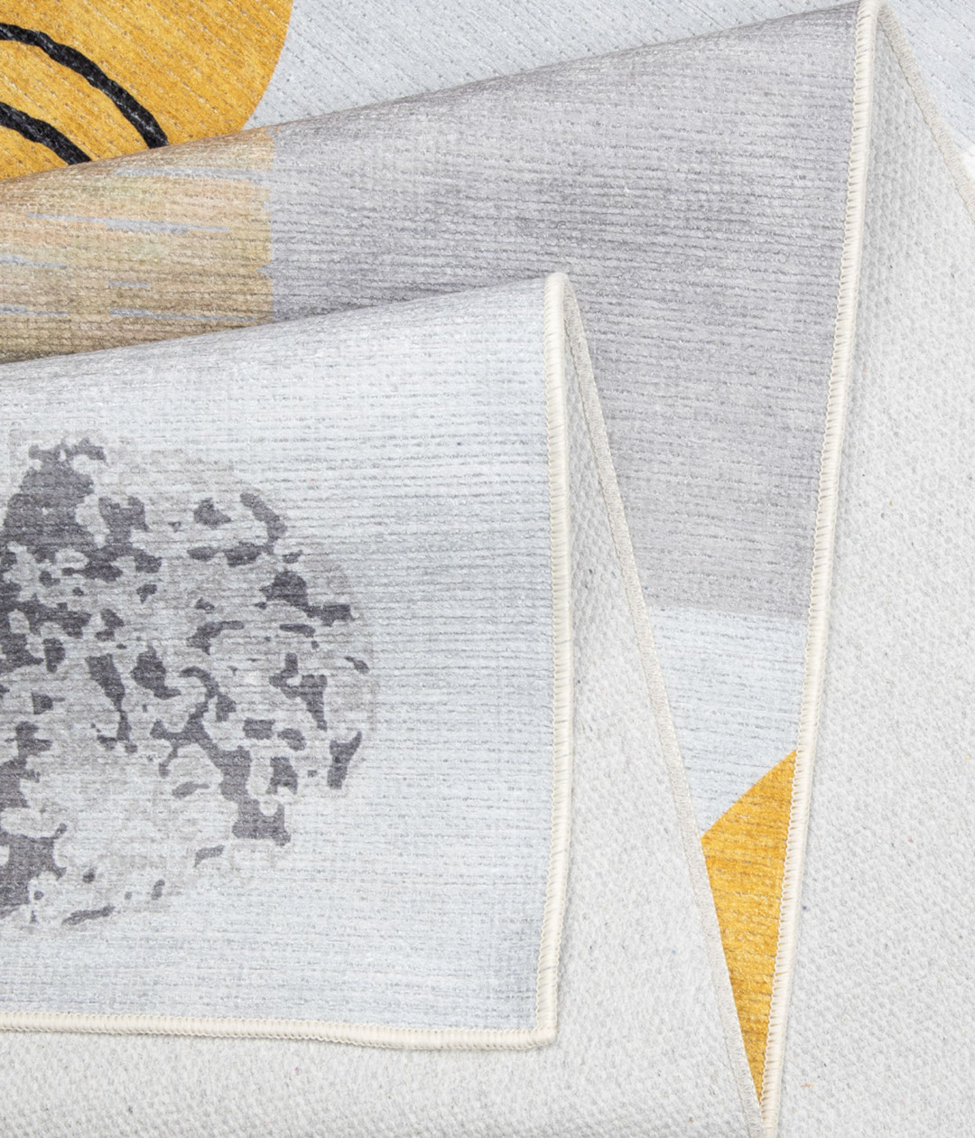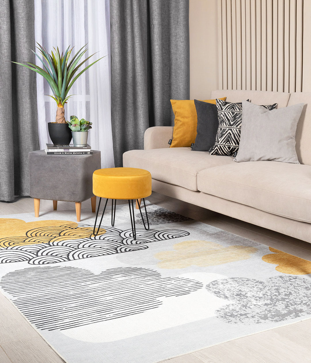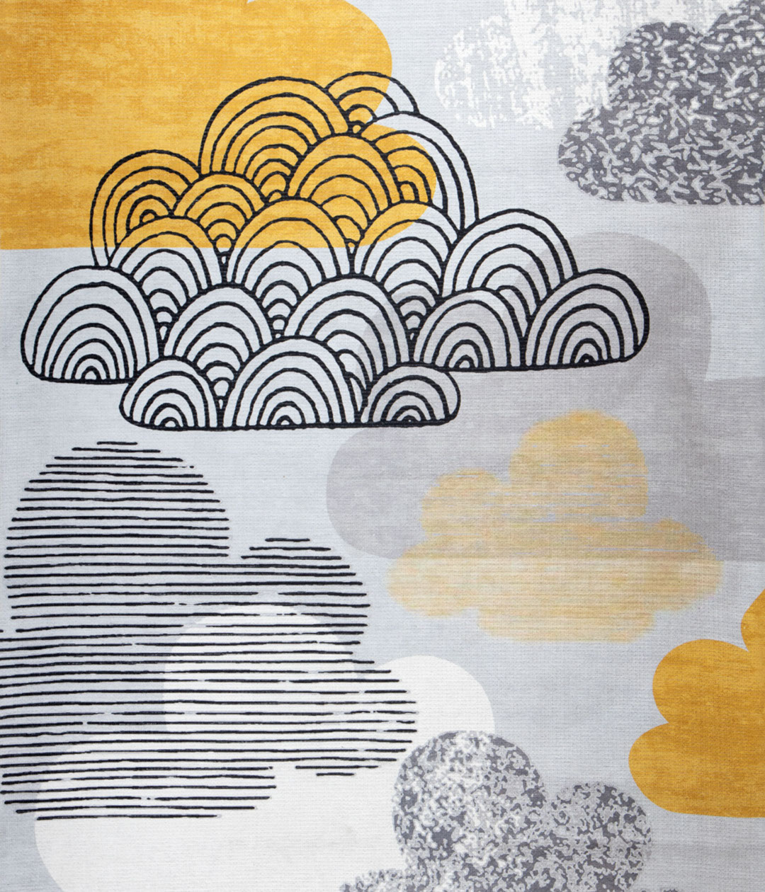 Яркая цветовая палитра и оригинальный абстрактный дизайн – все самое лучшее сочетается в шенилловом ковре UNGARO CLOUD. Теплая цветовая палитра желтого на нейтральном сером фоне делают ковер по-настоящему “солнечным”. Он прекрасно подойдет для современных интерьеров в стиле минимализм.