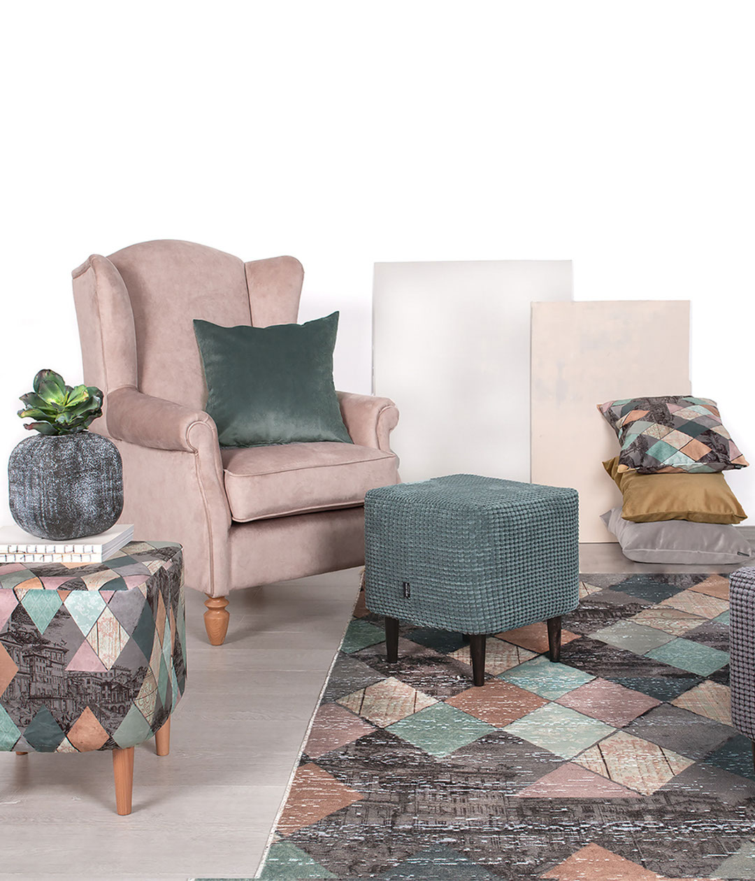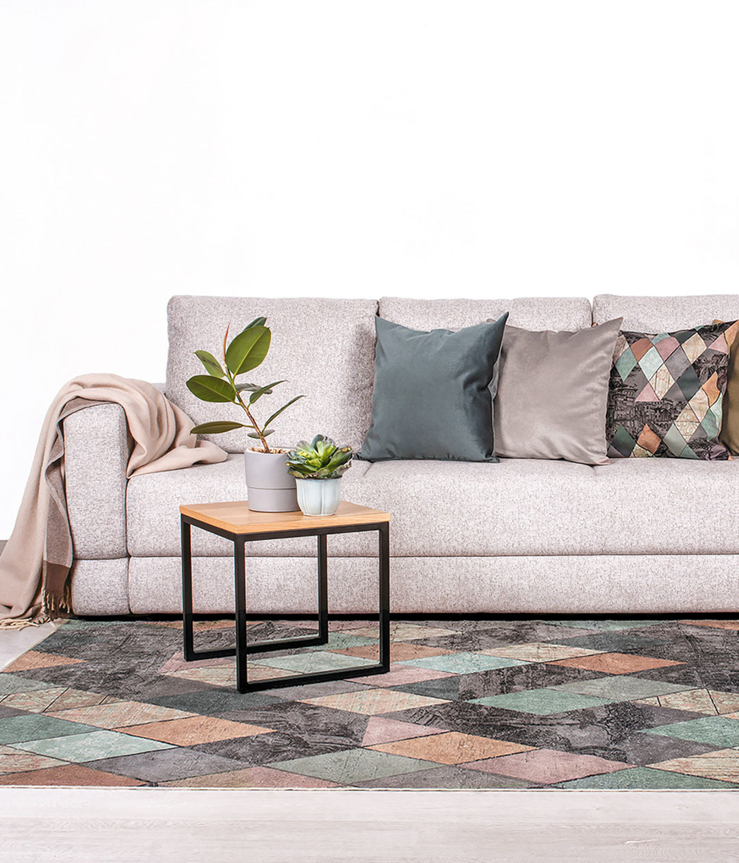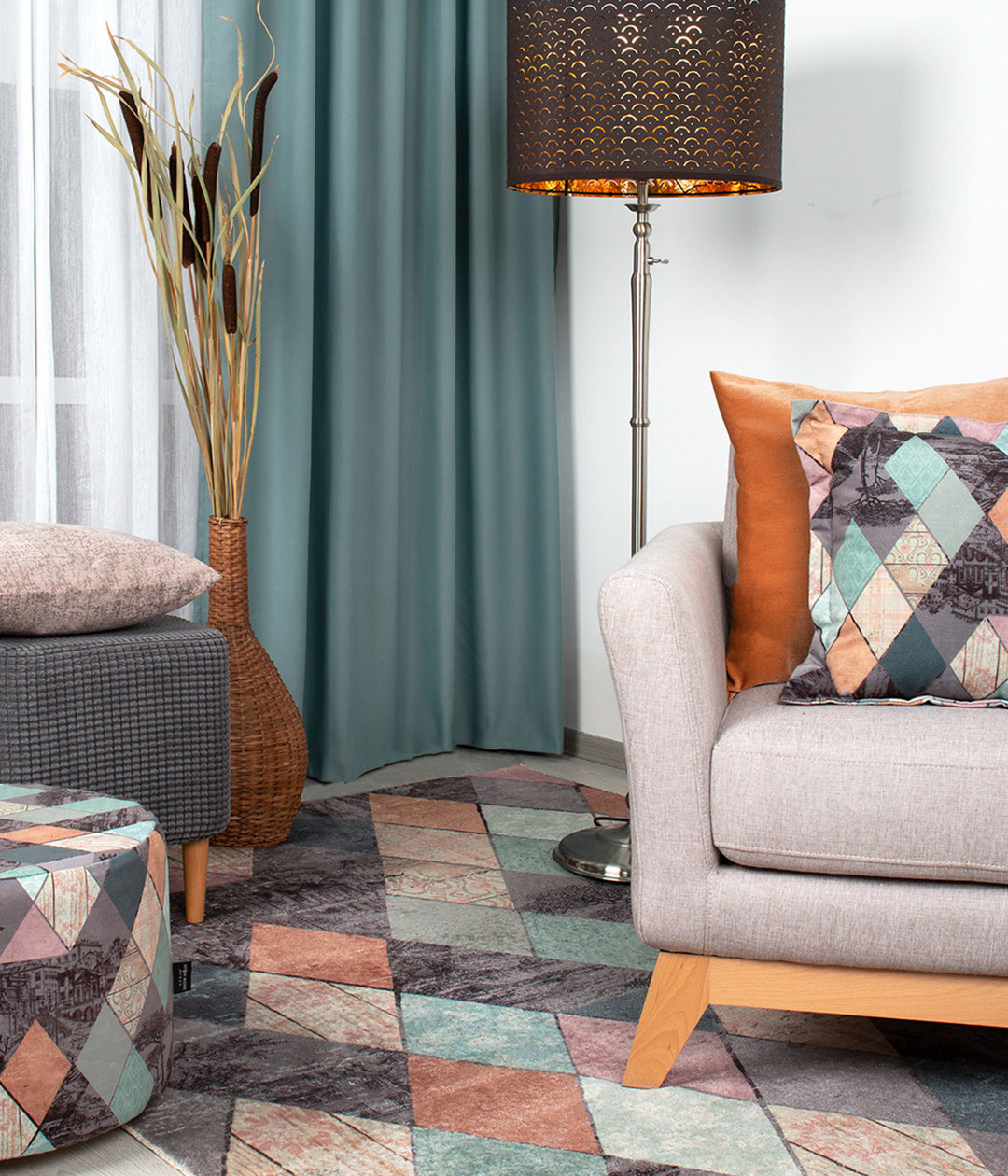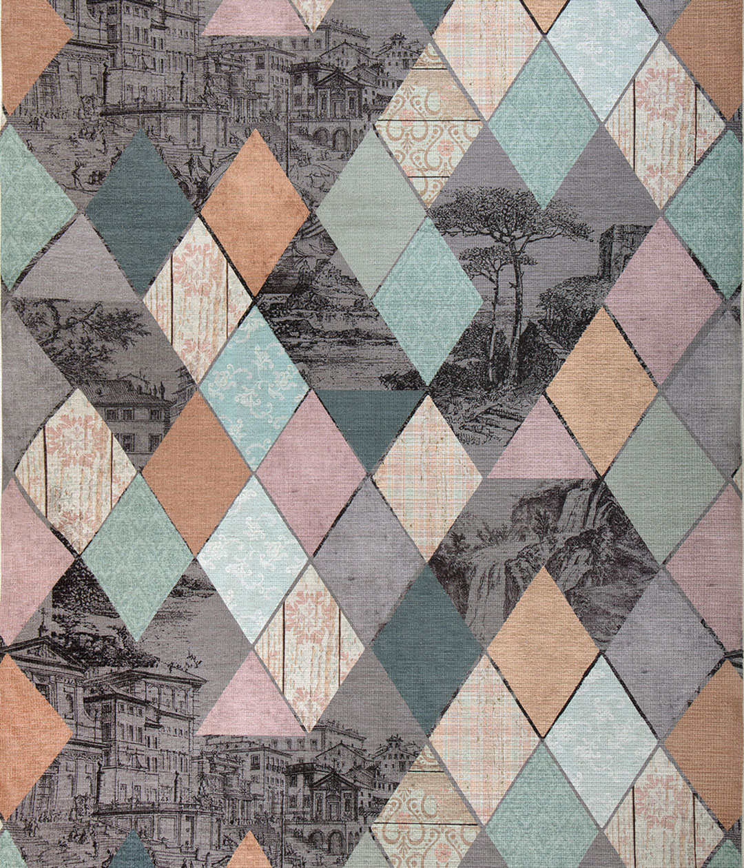 Благородная эклектика, воплощенная интересными дизайнерскими приемами. Это не просто ковер, а целая история. Словно за разноцветными витражными стеклами нежных, приглушенных оттенков кораллового, бледно-ментолового и охристо-бежевого угадываются утопающие в сумерках итальянские улочки, горный водопад, цветущее дерево, морской утес… Атмосферный ковер, который станет изюминкой и главным акцентом любого интерьера.