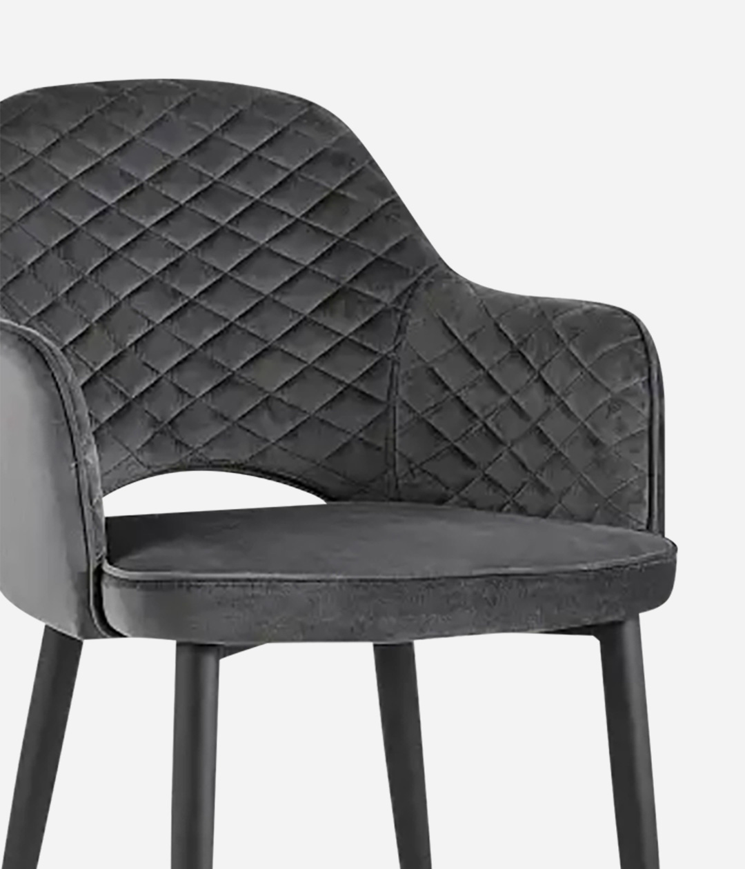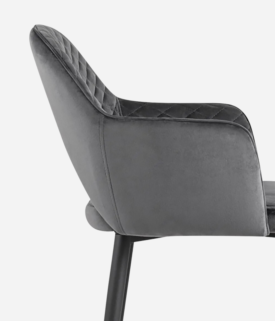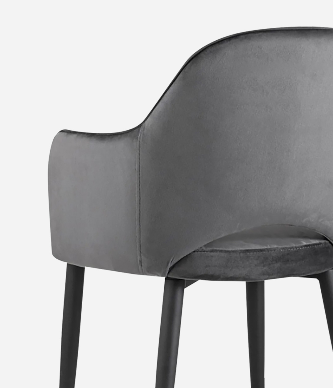 Интересное сочетание современного дизайна и вневременной мебельной классики. Обивка из мебельной велюровой ткани, мягкой, бархатистой и очень приятной на ощупь. Мебельная ткань велюр - очень практичная и устойчивая к истиранию. Ножки: металл, черного цвета.