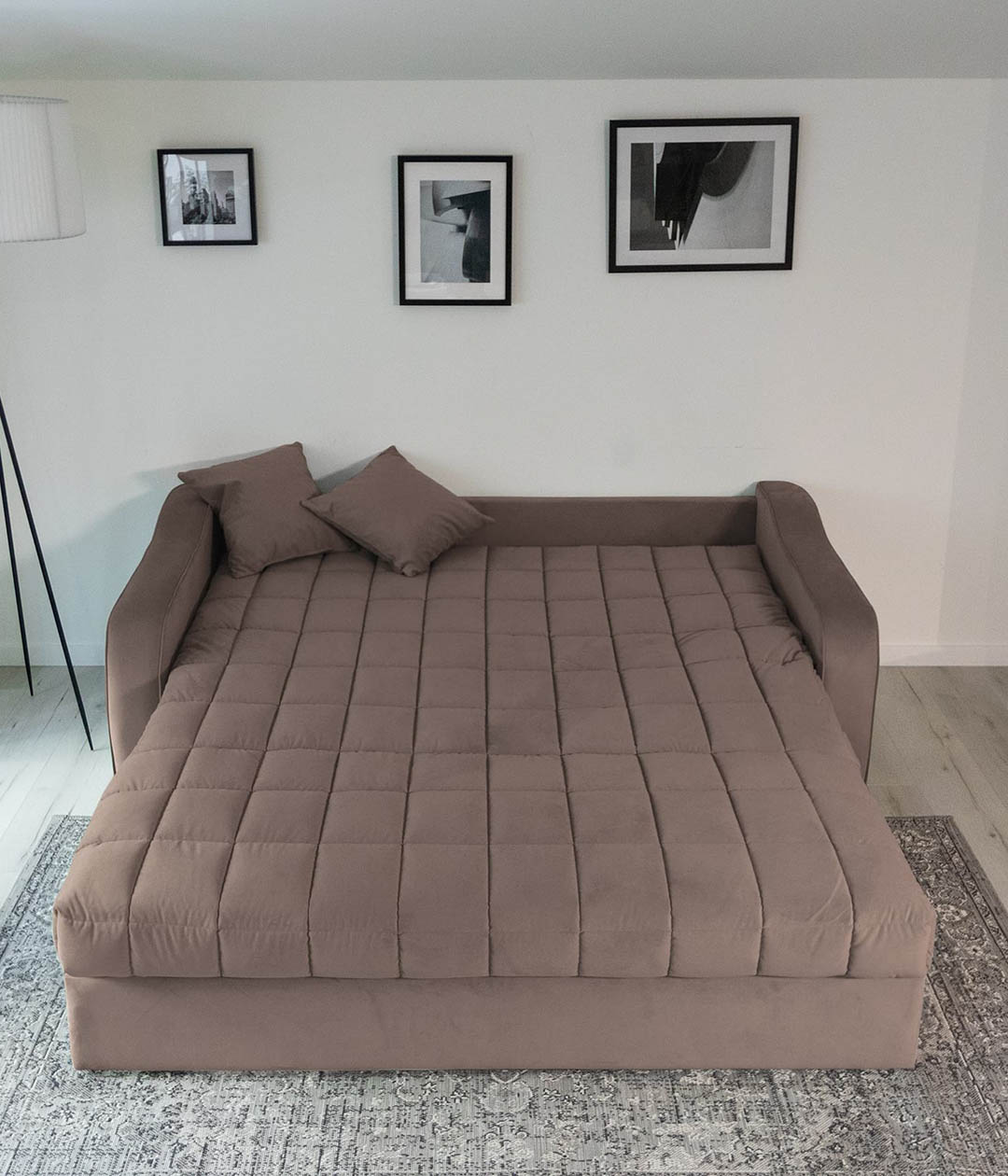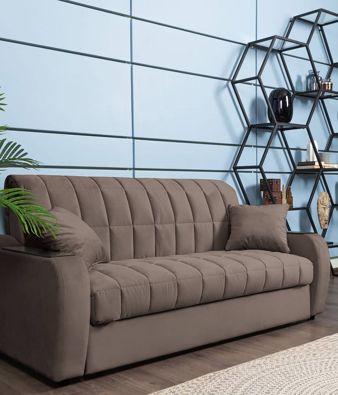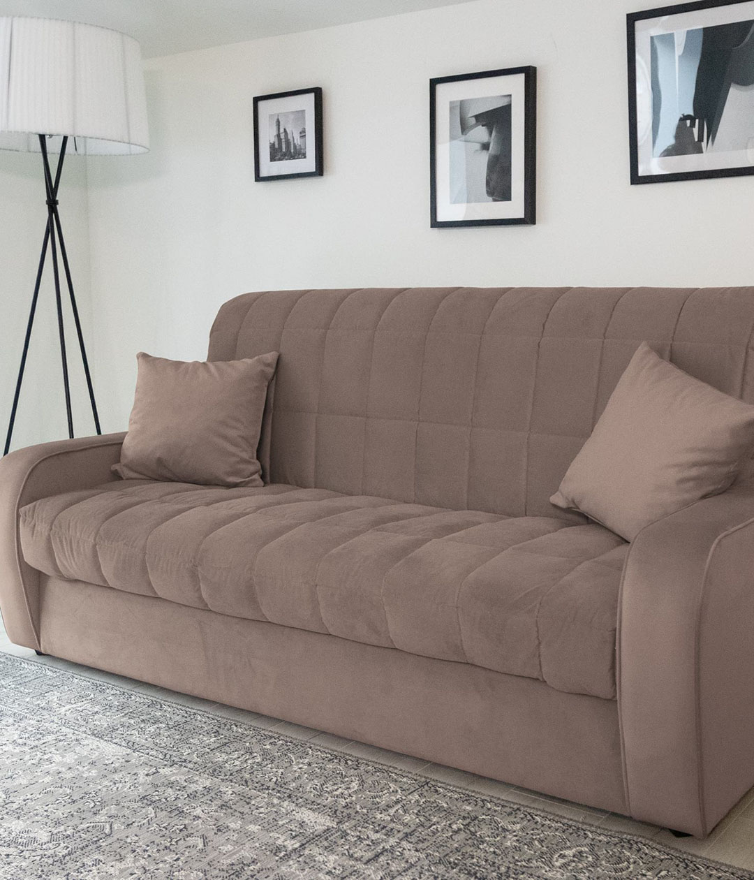 Диван-аккордеон Вентура — отличный выбор для ежедневного использования. Он легко раскладывается в ровное спальное место, обеспечивающее комфортный сон и отдых. Ткань обивки имеет нежную и бархатистую структуру, но достаточно практична и проста в уходе. Классический стиль делает диван универсальным для любого интерьера, сочетая в себе удобство и элегантность.