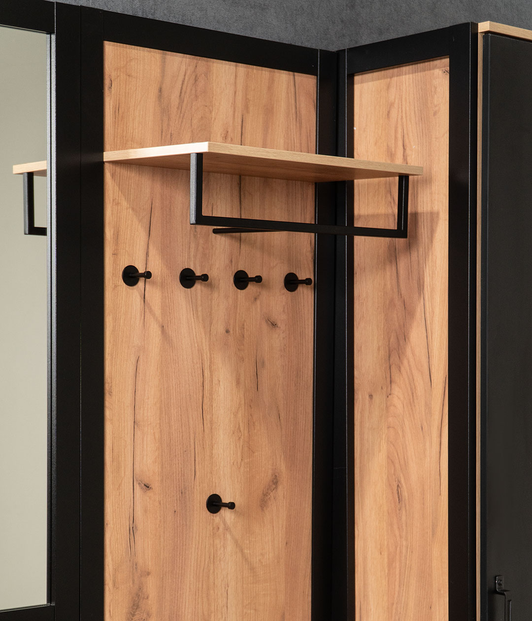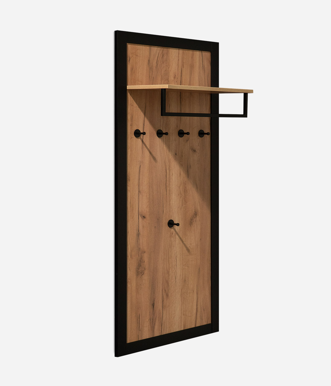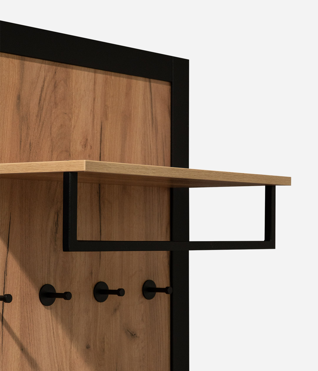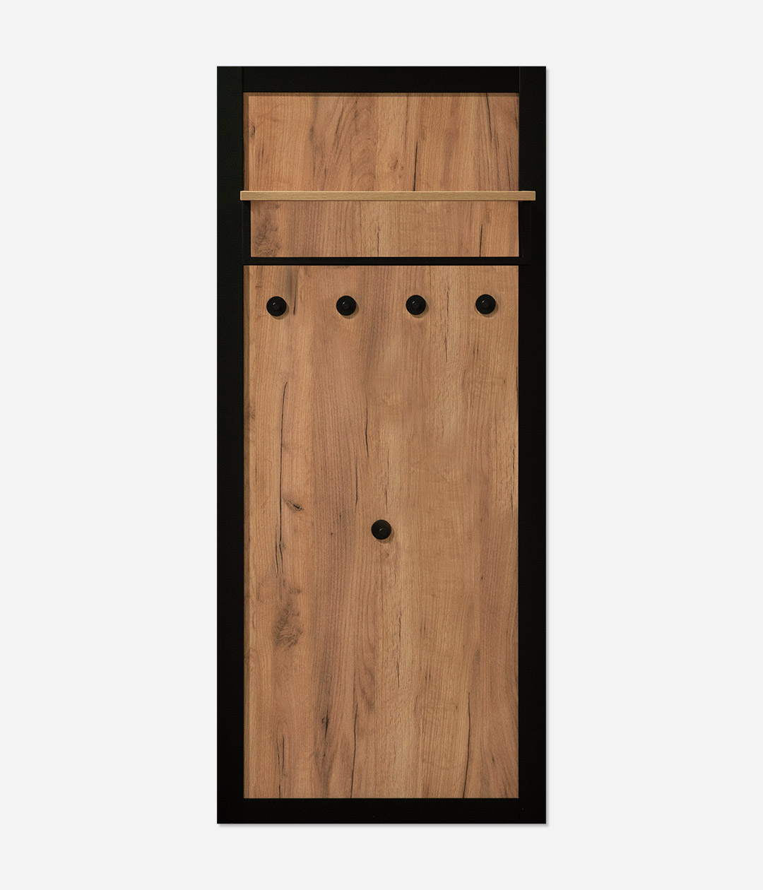 Настенная вешалка Техно станет функциональным дополнением интерьера прихожей. Металлические крючки позволят аккуратно развесить верхнюю одежду, а полка подойдет для головных уборов и аксессуаров.