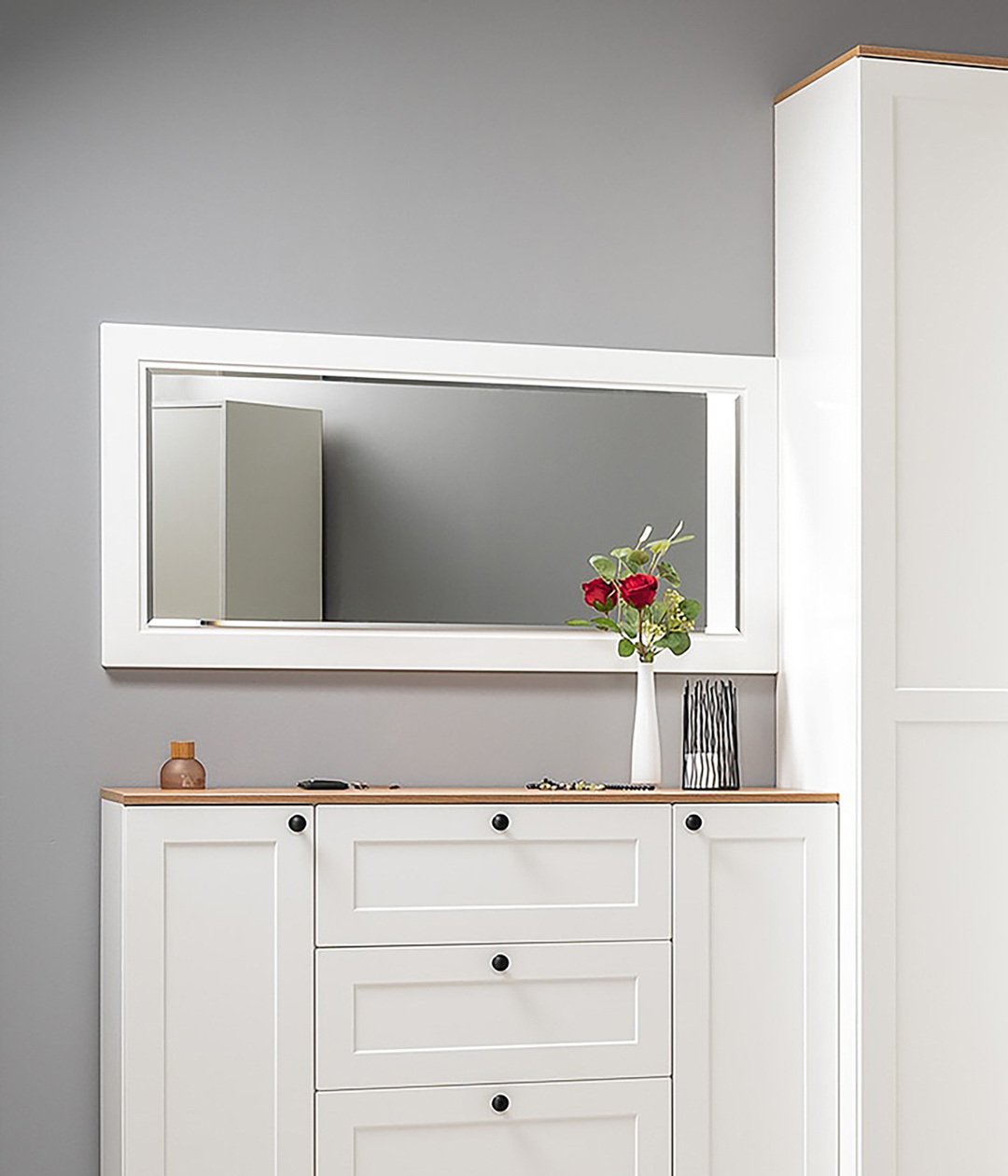 Настенное зеркало Остин с изящной фацетной огранкой и минималистичной рамой отлично подойдет для оформления любого интерьера. Широкое зеркальное полотно сделает помещение визуально просторнее, а обстановку — светлее.
